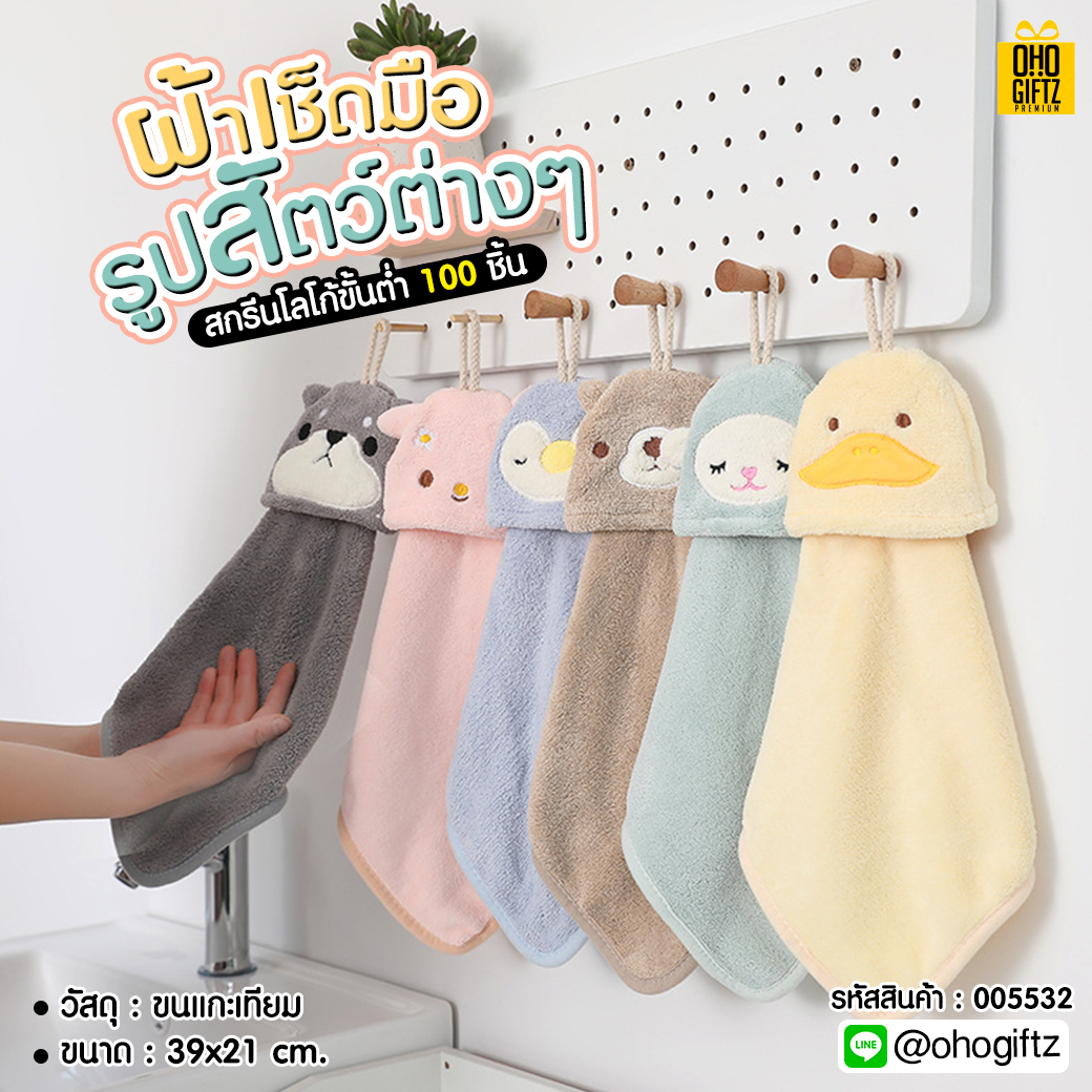 ผ้าเช็ดมือสัตว์น้อยน่ารัก สกรีนโลโก้ ติดลาเบล ทำเป็นของพรีเมี่ยมได้