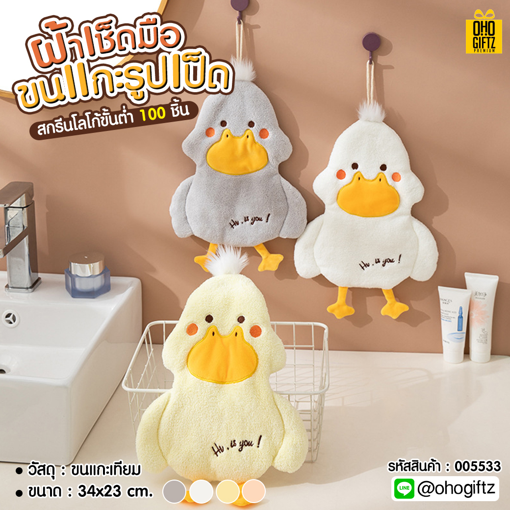 ผ้าเช็ดมือขนแกะรูปเป็ด ปักชื่อ, ติดลาเบล ทำเป็นของพรีเมี่ยมได้