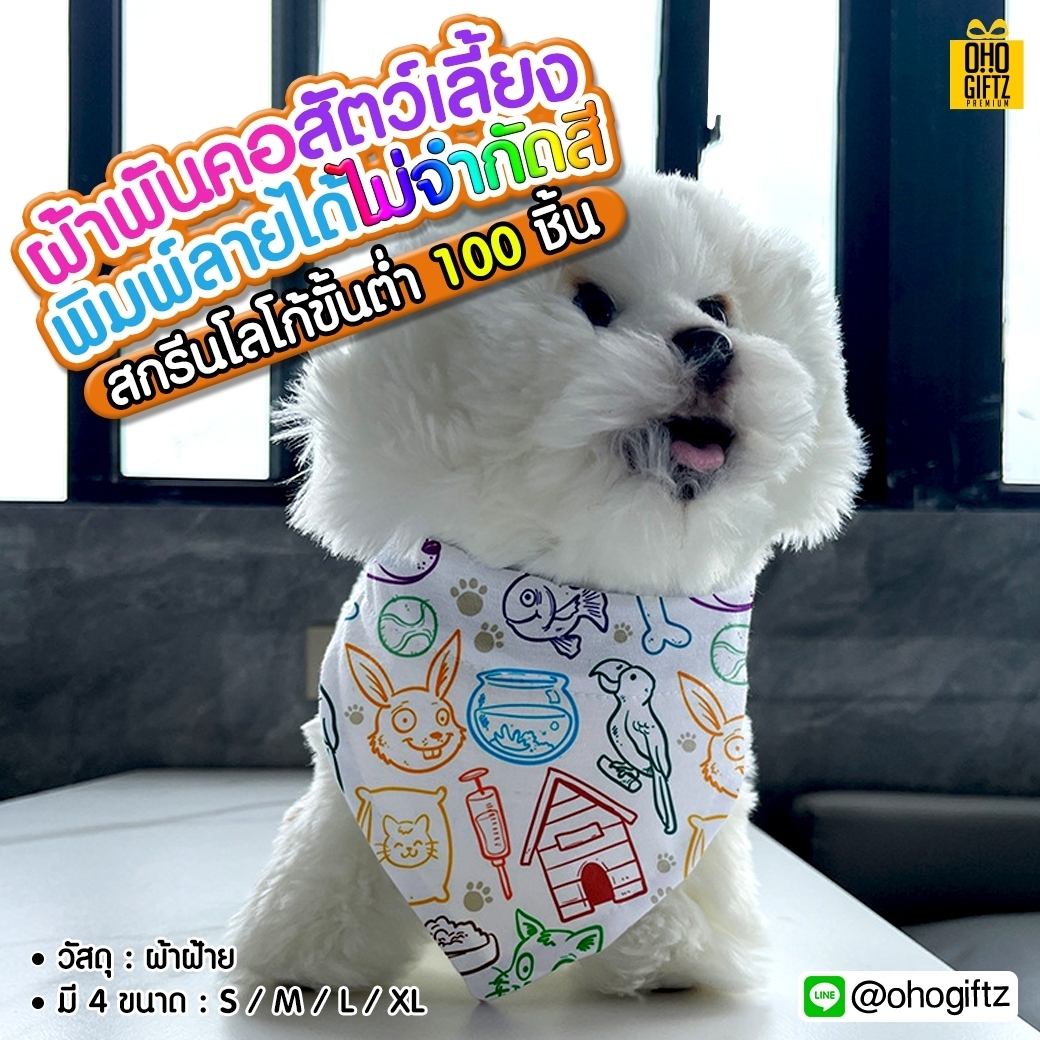 ผ้าพันคอสัตว์เลี้ยง พิมพ์ลายได้ไม่จำกัดสี สกรีนชื่อ,โลโก้