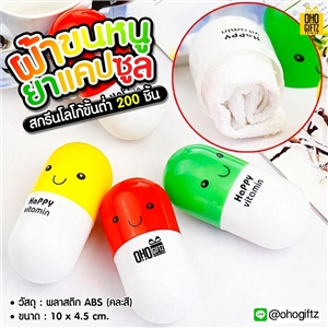 ผ้าขนหนูยาแคปซูล สามารถปักหรือติดลาเบล สกรีนโลโก้ทำเป็นของพรีเมี่ยมได้