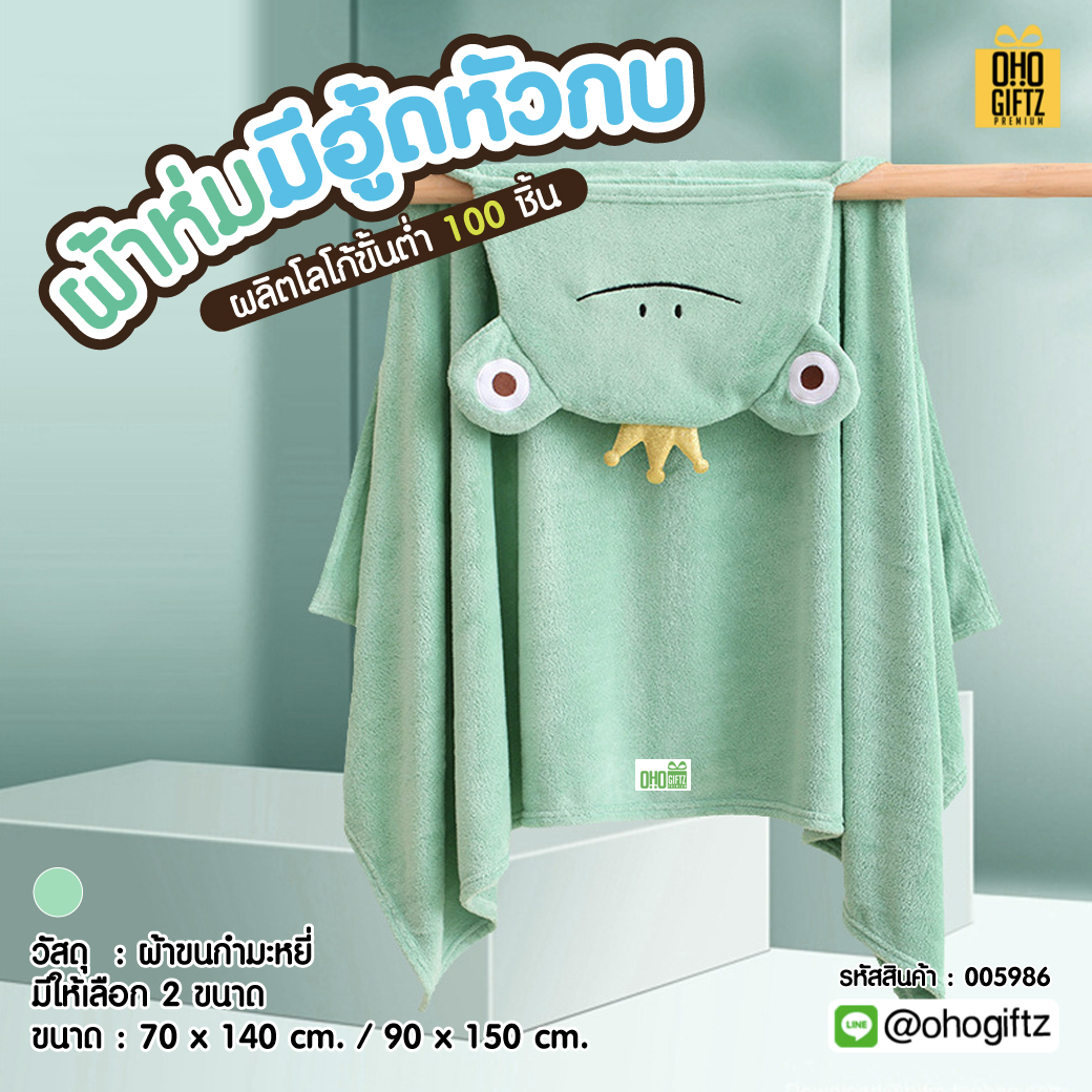 ผ้าห่มมีฮู้ดหัวกบ เพิ่มโลโก้, ติดลาเบล ทำเป็นของพรีเมี่ยมได้