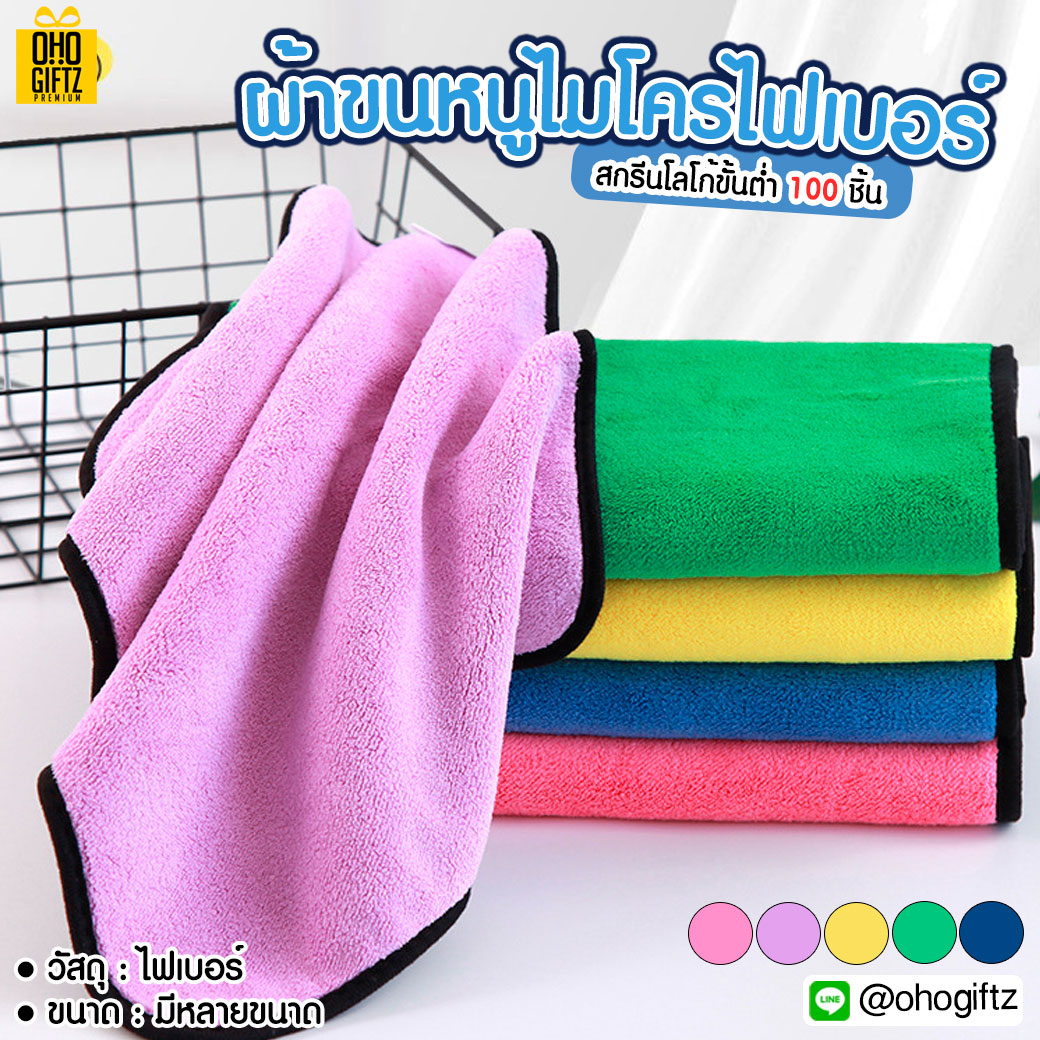 ผ้าขนหนูผ้าไมโครไฟเบอร์ ปักชื่อ ติดลาเบล หรือเลเซอร์โลโก้ ทำเป็นของพรีเมี่ยมได้