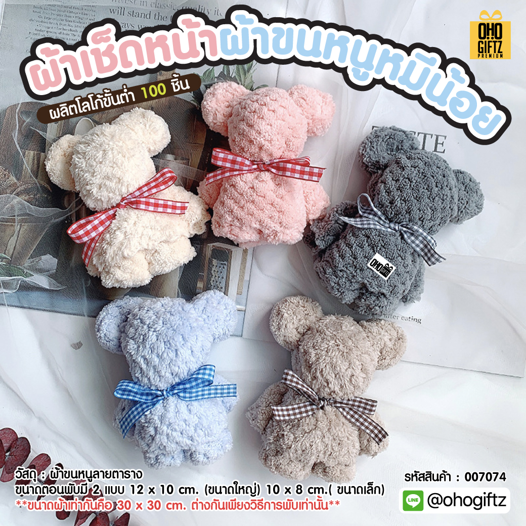 ผ้าขนหนูหมี ผลิตโลโก้ ติดลาเบล ทำเป็นของพรีเมี่ยมได้