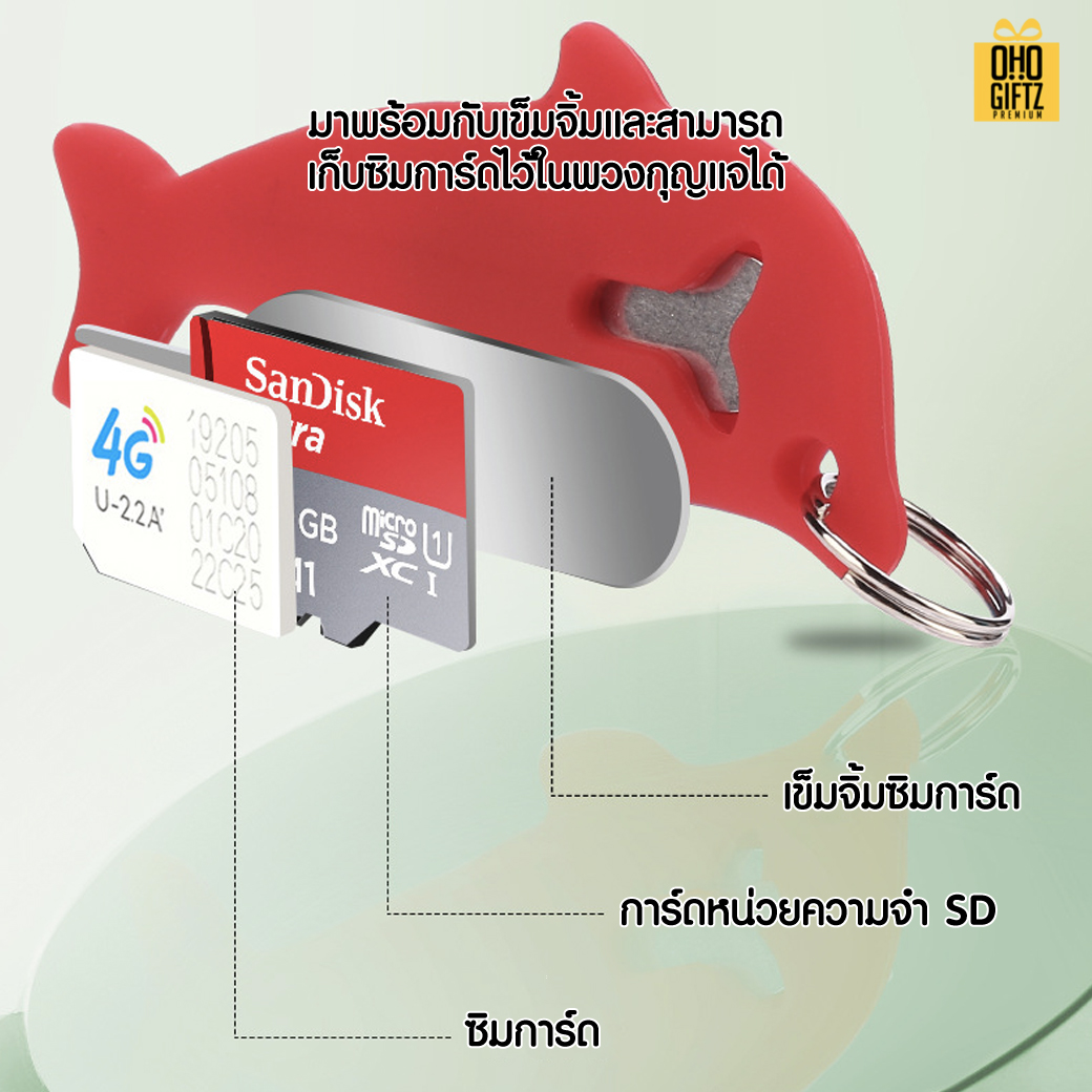 พวงกุญแจโลมา เก็บซิมการ์ดพร้อมเข็ม ดีไซน์น่ารักทันสมัย มาพร้อมเข็มจิ้มซิม สะดวกใช้งานยามไปต่างประเทศ ยามท่องเที่ยว สามารถเก็บซิมการ์ด หรือ เอสดีการ์ดที่พวงกุญเเจได้ น้ำหนัก เบาพกพาสะดวก