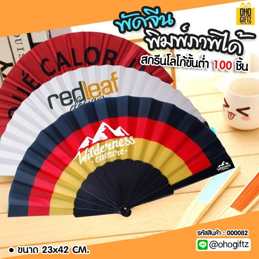พัดจีน สกรีนโลโก้ ทำเป็นสินค้าพรีเมี่ยม ของชำร่วย ของที่ระลึก (ขั้นต่ำ 100 ชิ้น)