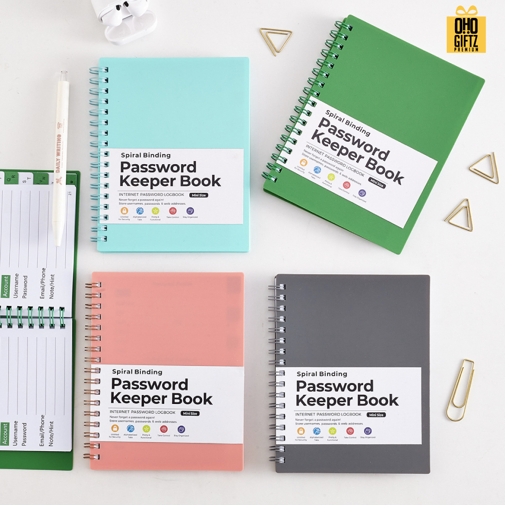 สมุดโน๊ตเก็บ Password ดีไซน์มินิมอล สีสันสวยงาม ขนาดพอเหมาะพกพาง่าย เขียนเรียบลื่นไม่สะดุด ปกสมุดสามารถกันละอองน้ำได้ กระดูกงูสองซี่แข็งแรงทนทาน สะดวกใช้งาน