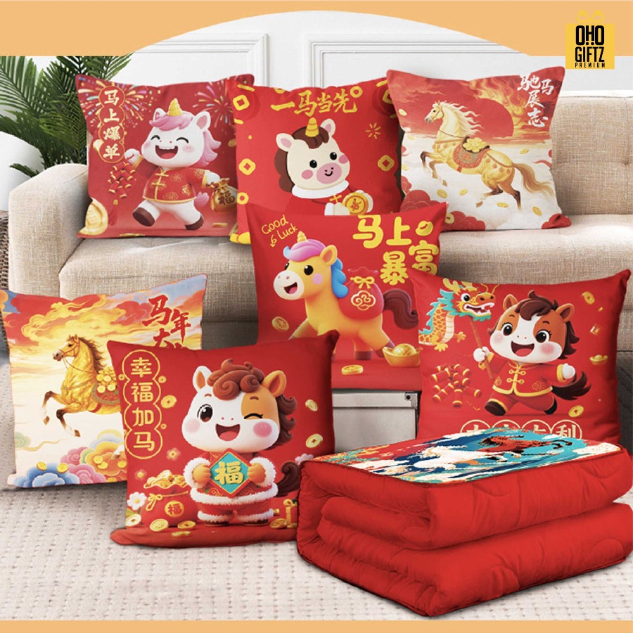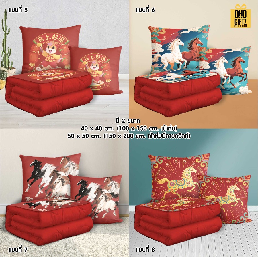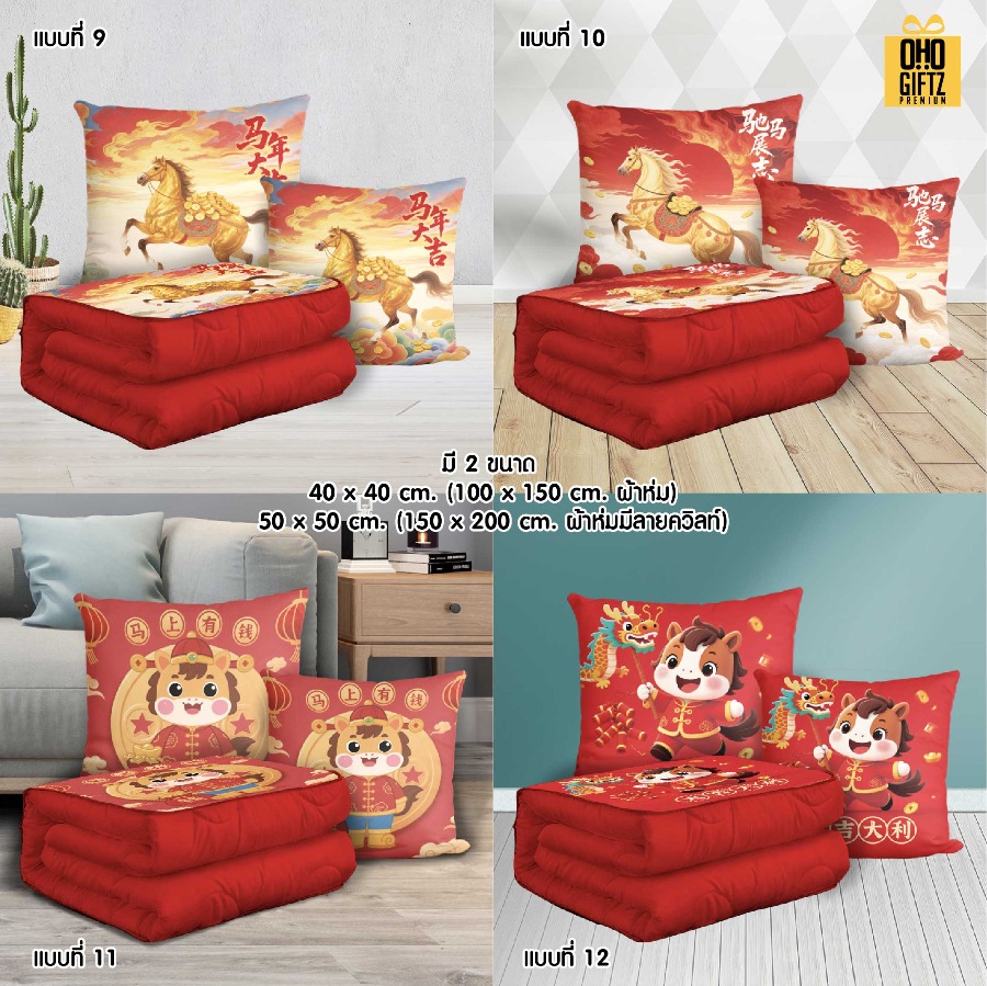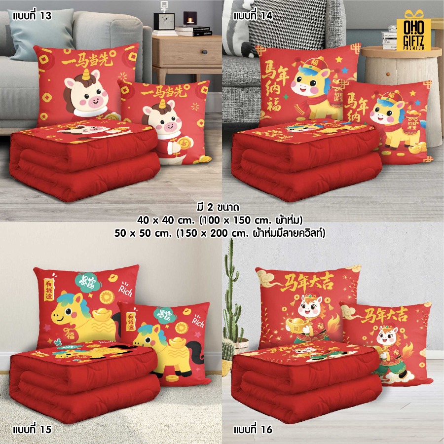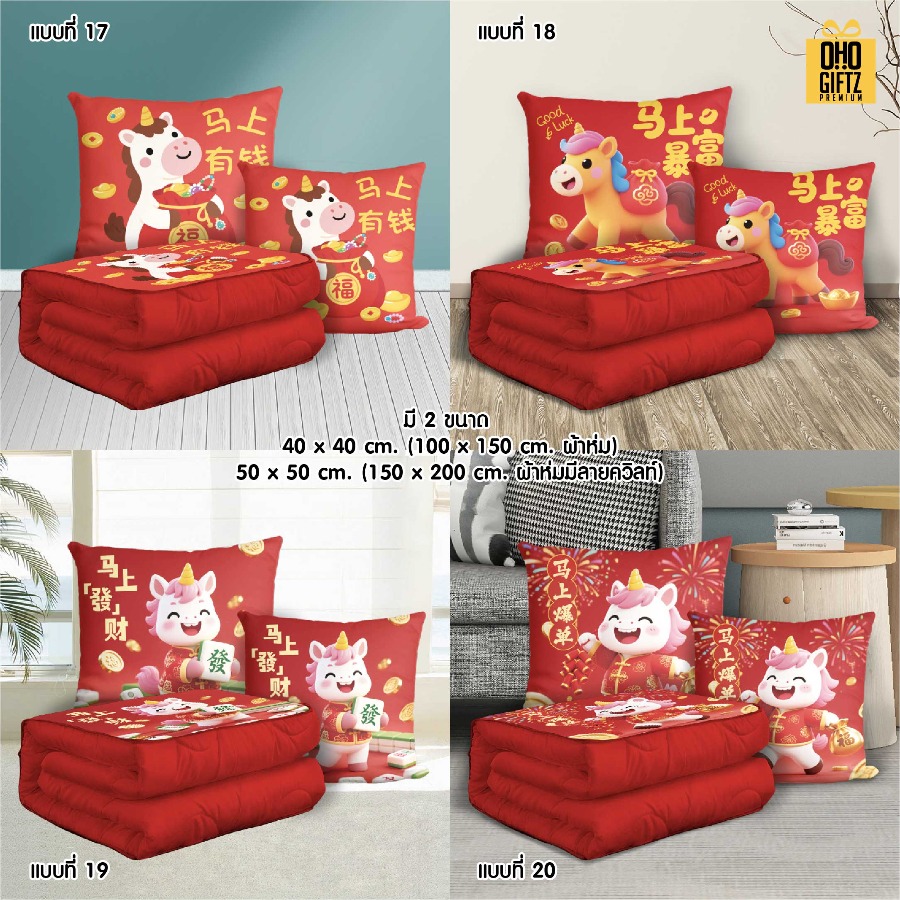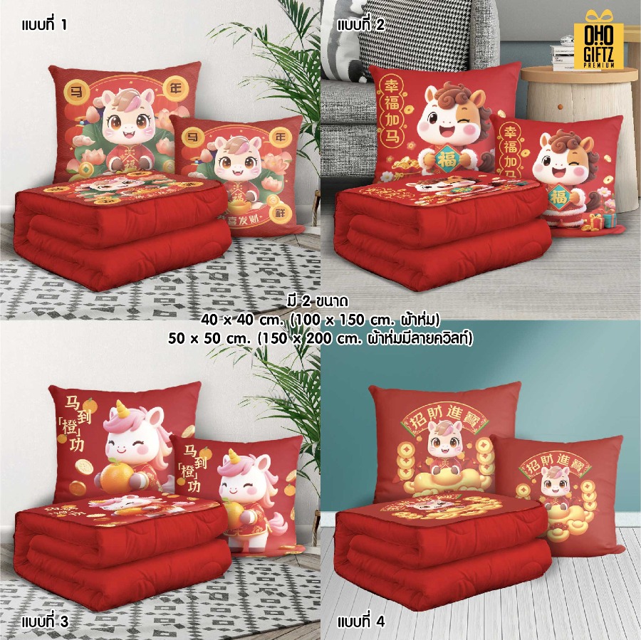 หมอนผ้าห่มปีมะเมีย สกรีนโลโก้ ทำเป็นของพรีเมี่ยมได้  (ขั้นต่ำ 100 ใบ)
