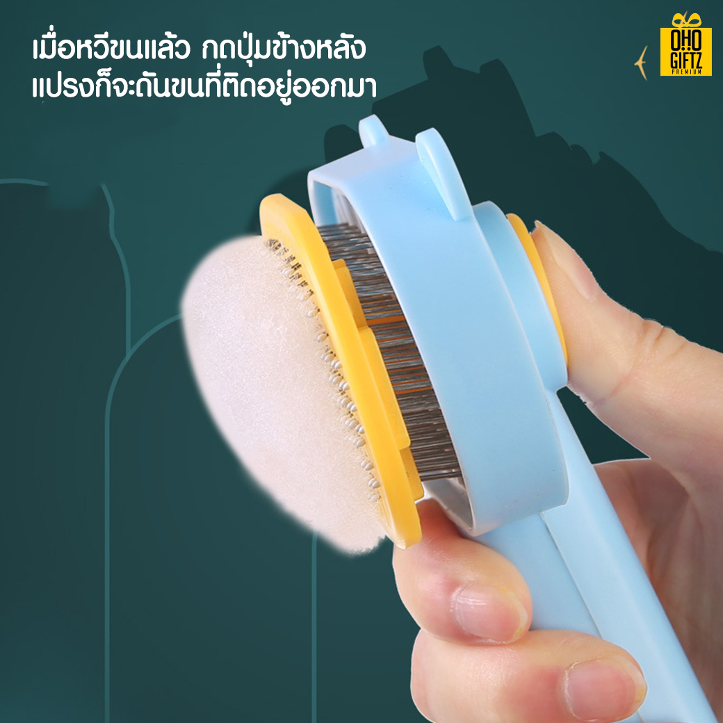 หวีแปรงขนสัตว์เลี้ยง ขนแปรงกลมออกแบบมาอย่างดี ไม่ทำร้ายผิวสัตว์เลี้ยง ช่วยลดการหลุดร่วง ทำให้สัตว์เลี้ยงรู้สึกผ่อนคลาย แค่กดปุ่ม สามารถกำจัดขนทั้งหมดได้ในครั้งเดียว