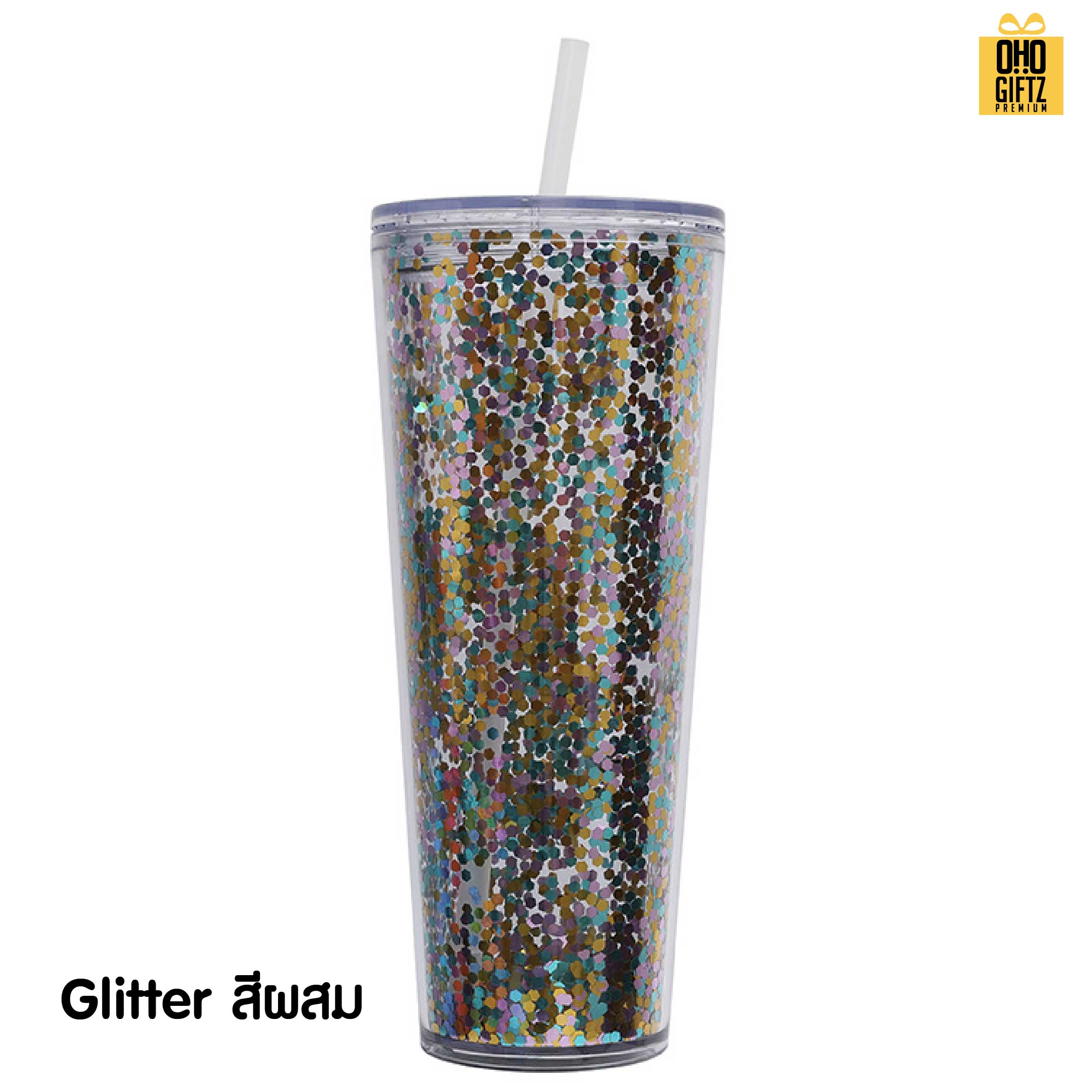 แก้วน้ำพลาสติก 2 ชั้น กากเพชร ดีไซน์เก๋ไก๋ น้ำหนักเบา สามารถใส่เครื่องดื่มได้ตามต้องการ มาพร้อมฝาปิดล็อคแน่นสนิท มาพร้อมหลอดสีเข้าชุดกัน น้ำหนักเบา พกพาสะดวก