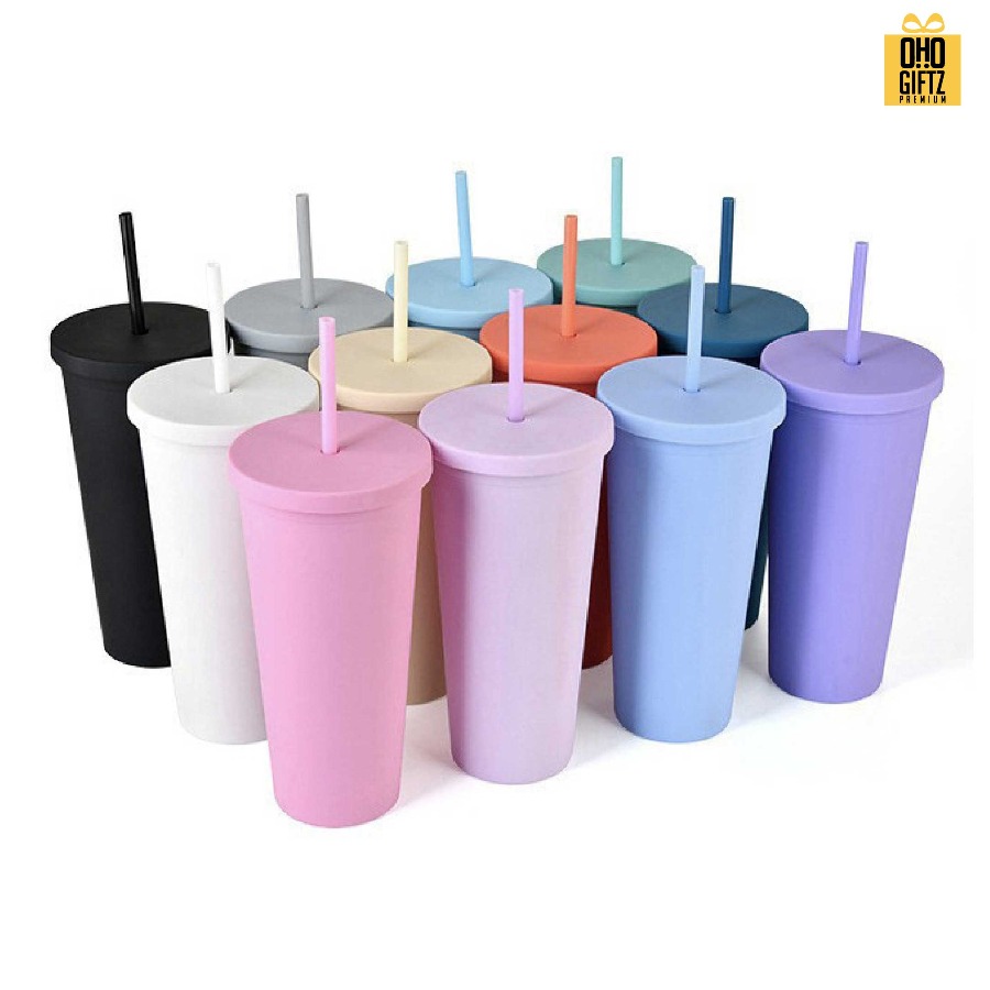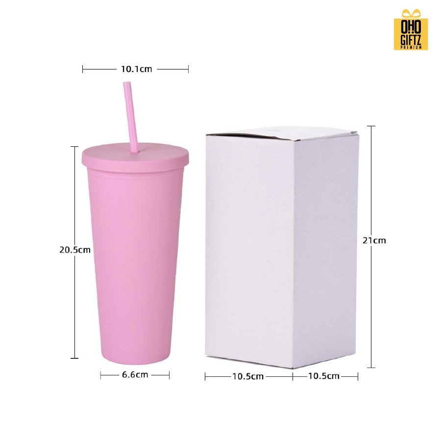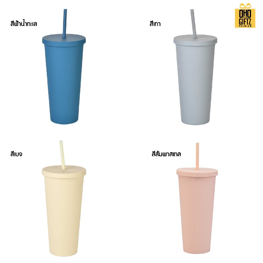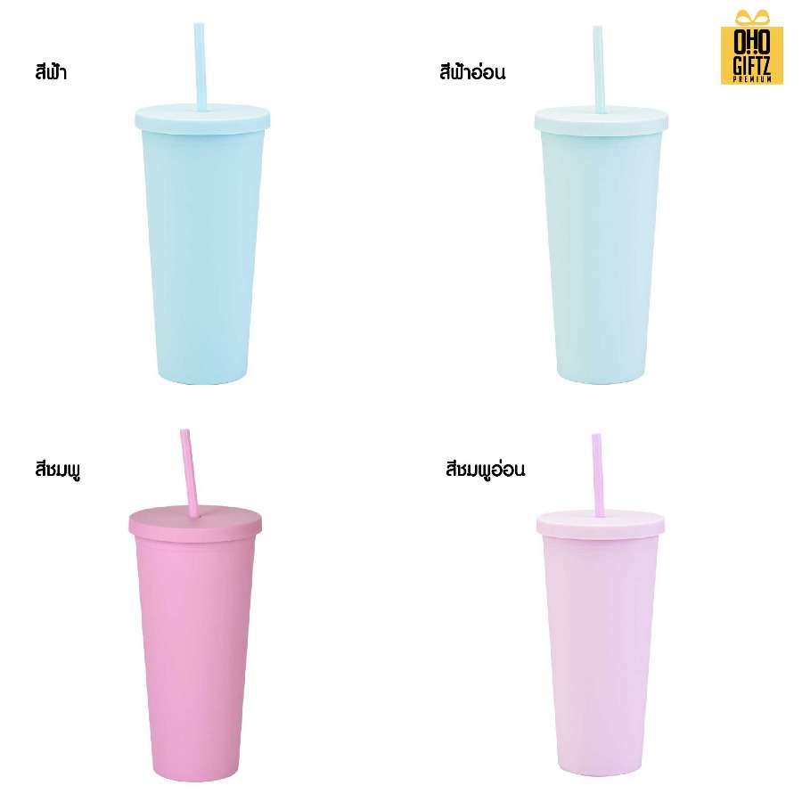 แก้วน้ำพลาสติก 2 ชั้น ดีไซน์มินิมอล สีสันสวยงาม ผลิตจากวัสดุคุณภาพดี ใช้งานสะดวกเพียงเติมน้ำ และปิดฝาวางคว่ำไว้ พกพาสะดวก