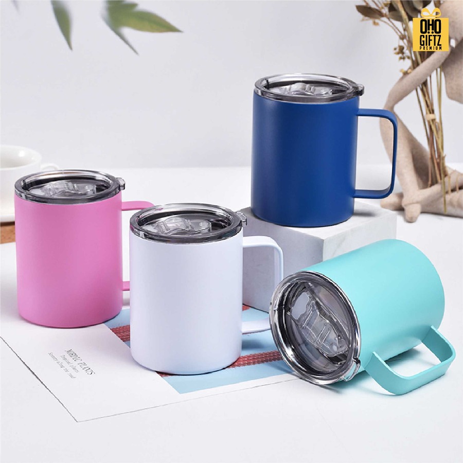 แก้วสแตนเลสมีหู ดีไซน์มินิมอล สีสันสดใส สามารถเก็บอุณหภูมิได้เป็นอย่างดี ฝาแก้วปิดแน่นสนิท สะดวกในการถือ ผลิตจากสเเตนเลส คุณภาพดีแข็งแรงทนทาน พกพาสะดวก