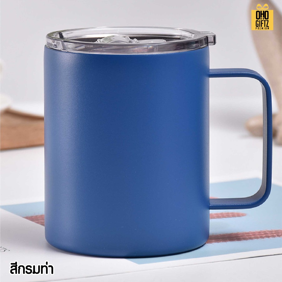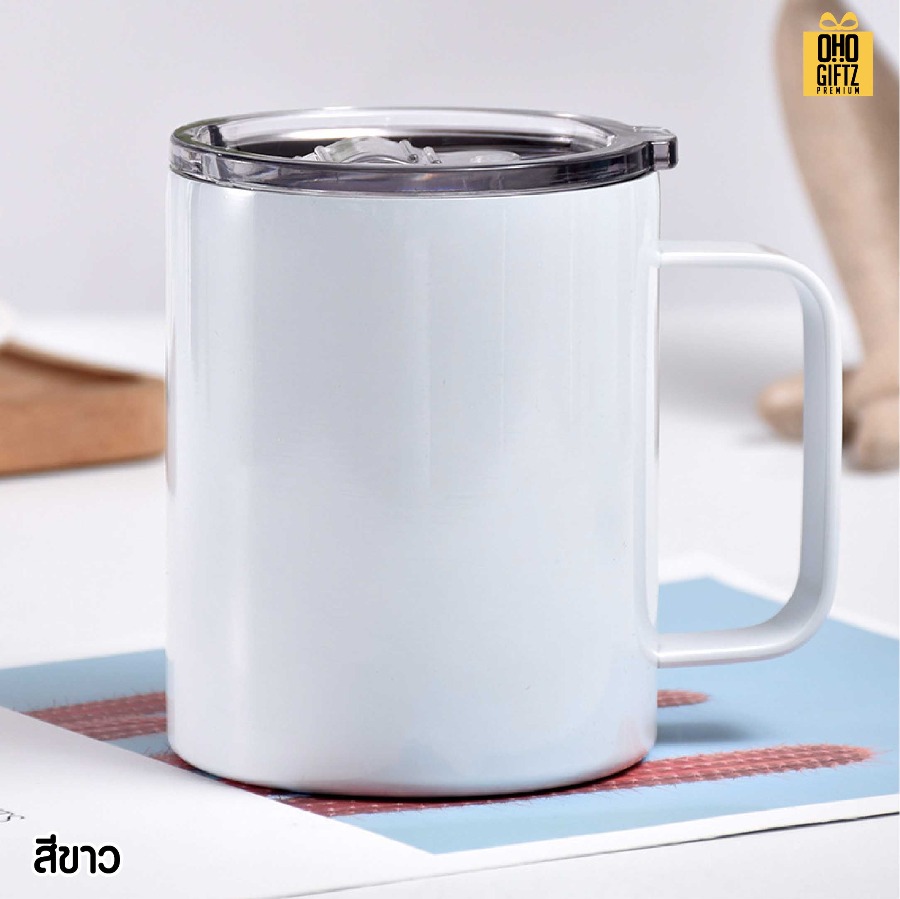 แก้วสแตนเลสมีหู สกรีนโลโก้ ทำเป็นของพรีเมี่ยมได้ (ขั้นต่ำ 100 ชิ้น)