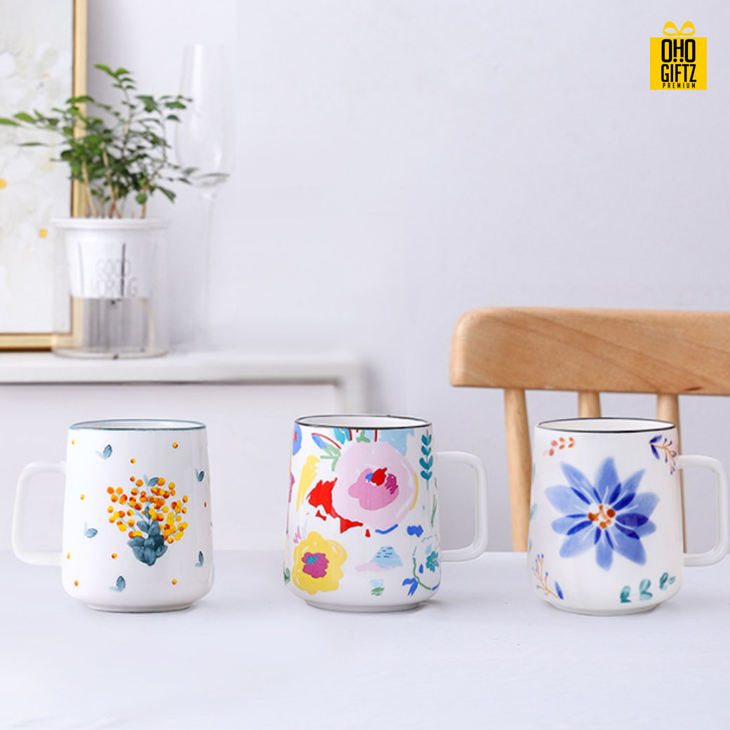แก้วเซรามิกลายดอกไม้ สกรีนชื่อ สกรีนโลโก้ทำเป็นของพรีเมี่ยมได้ (ขั้นต่ำ 100 ชิ้น)