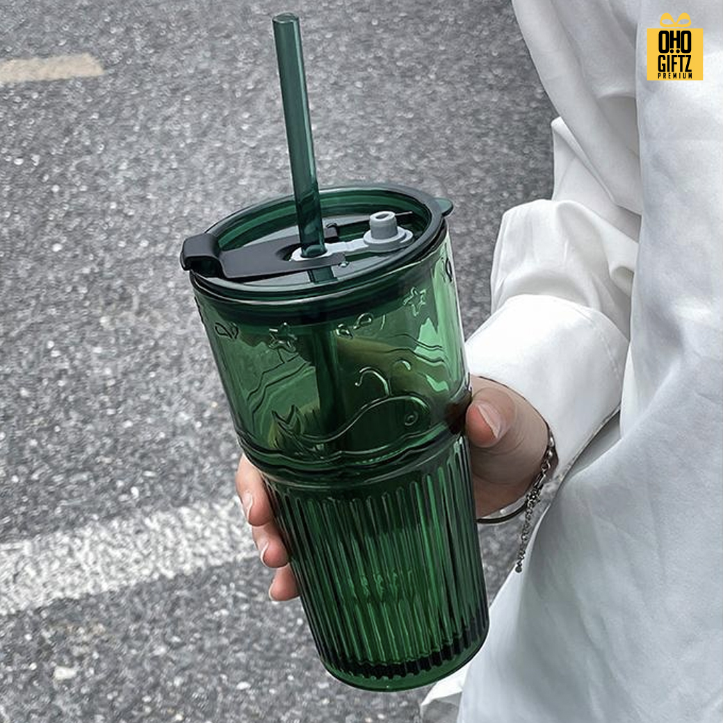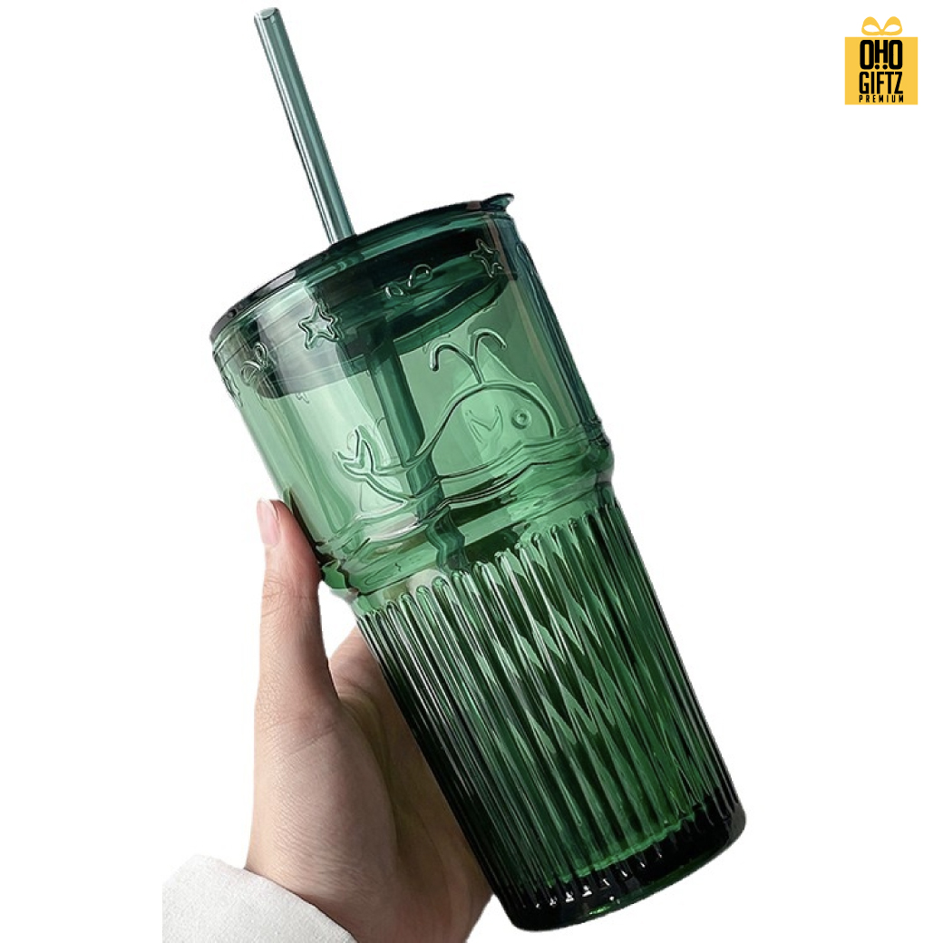 แก้ว Retro สีเขียว Emerald ดีไซน์เรโทร สีสันสวยงาม ผลิตจากวัสดุคุณภาพดี มาพร้อมหลอดกับฝาปิด ขนาดกระทัดรัด พกพาสะดวก