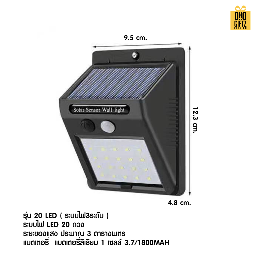 โคมไฟติดผนังพลังงานแสงอาทิตย์ สกรีนโลโก้ ทำเป็นของพรีเมี่ยมได้ (ขั้นต่ำ100ชิ้น)
