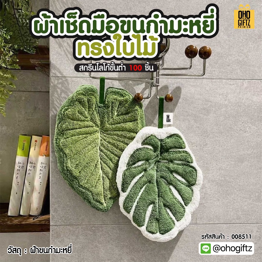 ผ้าเช็ดมือขนกำมะหยี่ทรงใบไม้ สกรีนโลโก้ ติดลาเบล ทำเป็นของพรีเมี่ยมได้