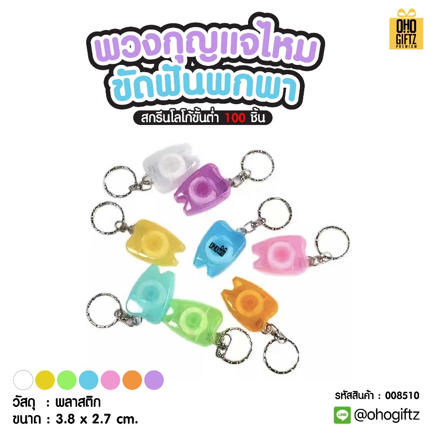 พวงกุญแจไหมขัดฟันพกพา สกรีนโลโก้ ทำเป็นของพรีเมี่ยม ของชำร่วยได้