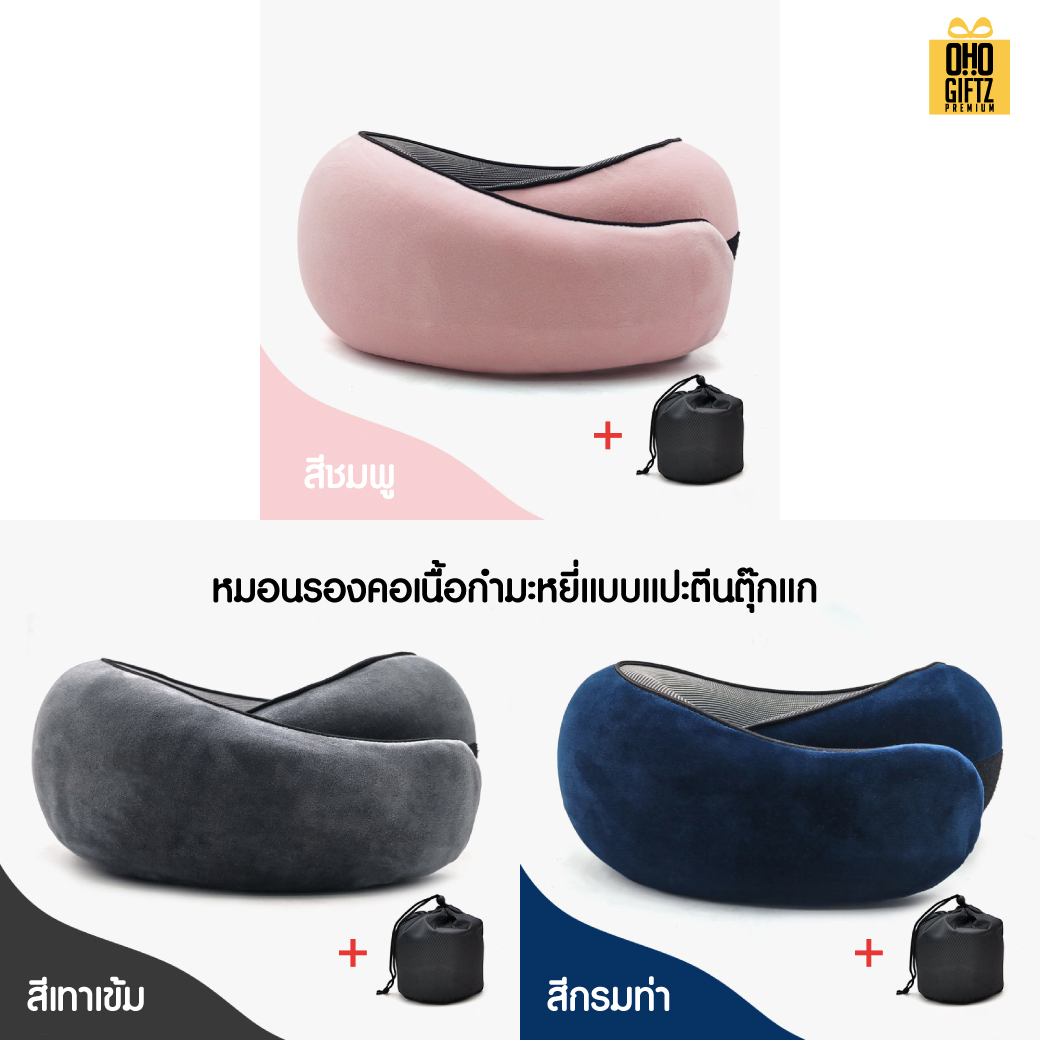 Memory Foam หมอนรองคอม้วนเก็บได้พร้อมถุงใส่ สกรีนชื่อ สกรีนโลโก้ ทำเป็นของพรีเมี่ยมได้