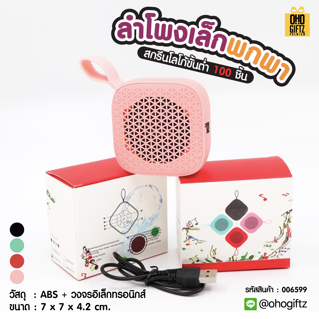 ลำโพงเล็กพกพา สกรีนโลโก้ สกรีนชื่อร้านทำเป็นของพรีเมี่ยมได้
