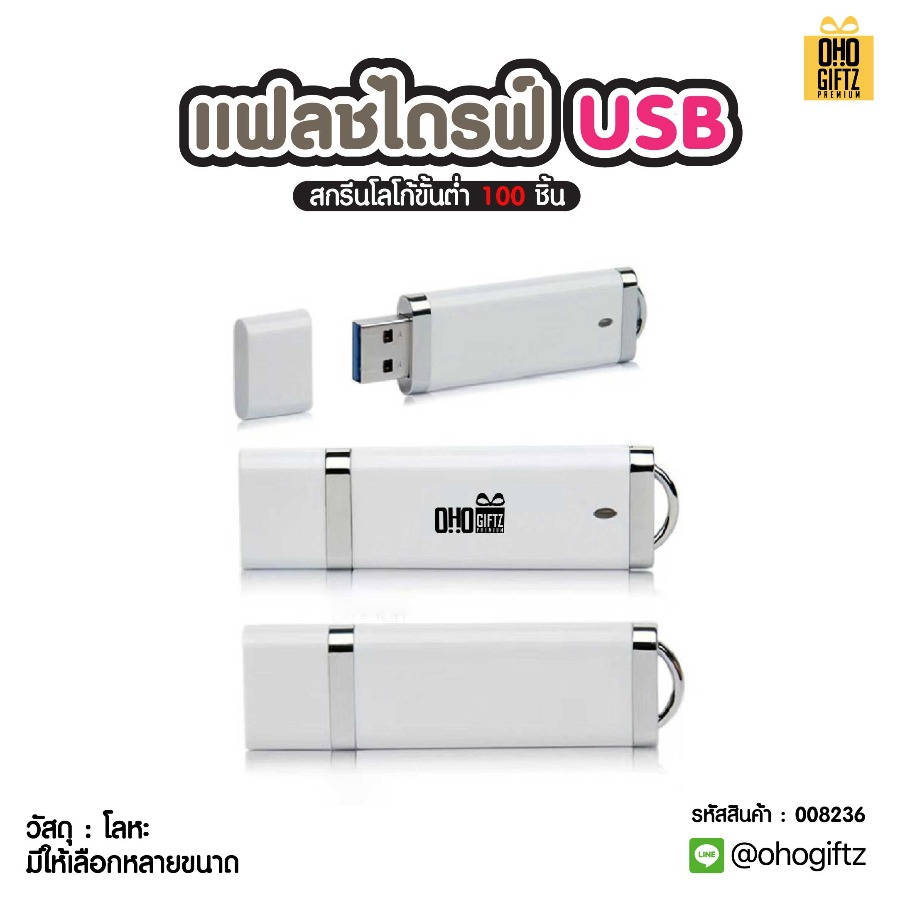 แฟลชไดรฟ์ USB สกรีนได้ไม่จำกัดสี สกรีนชื่อร้าน ทำเป็นของพรีเมี่ยมได้