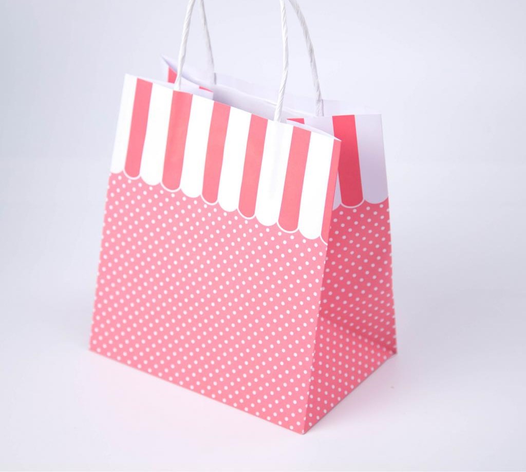 ถุงใส่ของ ถุงใส่สินค้า บรรจุภัณฑ์ ถุงกระดาษหูเกลียว สีชมพูกันสาด 19x13x21 ซม.