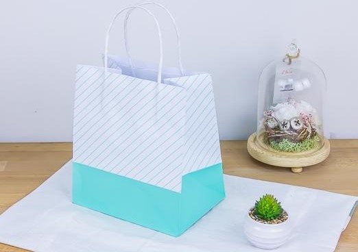 ถุงกระดาษหูเกลียว เขียวลายทาง ขนาด M
