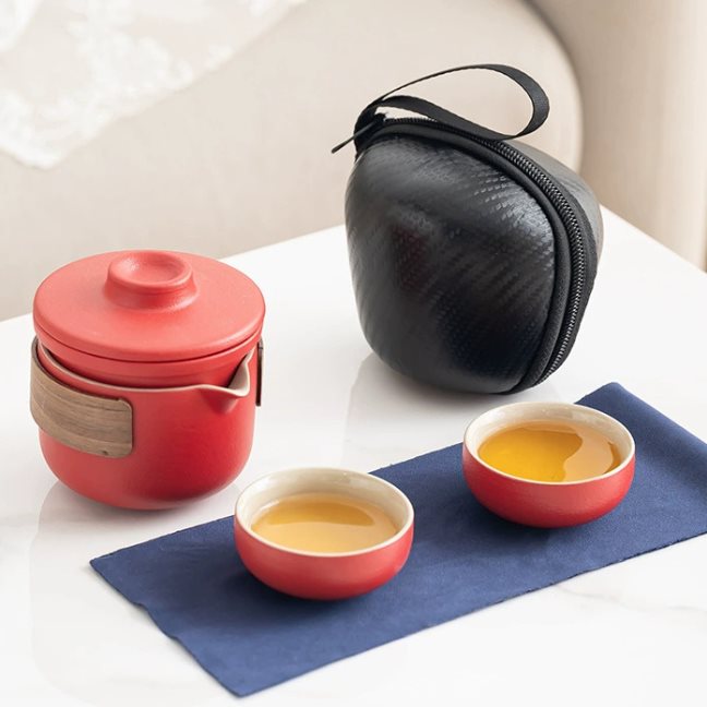 ชุดชงชาพกพาขนาดกะทัดรัดชุดนี้ถูกออกแบบมาเพื่อมอบประสบการณ์การจิบชาคุณภาพสูงได้ทุกที่ทุกเวลา ตัวชุดประกอบด้วยกาน้ำชาพร้อมที่กรองในตัวและถ้วยดื่มชาสองใบ ทั้งหมดจัดเก็บในกระเป๋าใส่ที่แข็งแรงและมีดีไซน์สวยงาม ช่วยให้การนำชุดชาติดตัวไปท่องเที่ยว ทำงาน หรือปิกนิกเป็นไปอย่างสะดวกและปลอดภัย วัสดุเซรามิกที่มีคุณภาพพร้อมแถบไม้ด้านข้างกาน้ำชาเพื่อป้องกันความร้อน ช่วยเพิ่มความสวยงามและสัมผัสที่เป็นธรรมชาติให้กับชุดชา