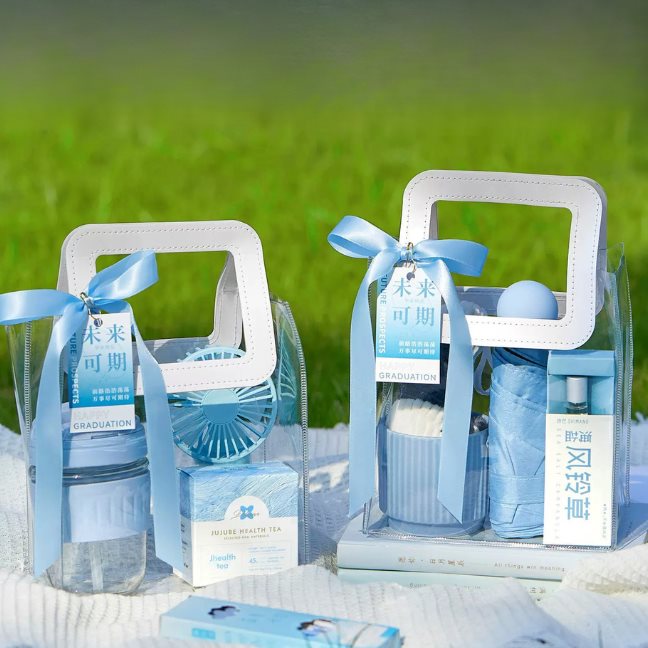 ชุดกิฟต์เซ็ตนี้เหมาะอย่างยิ่งสำหรับการสั่งทำเป็นของที่ระลึกแจกทั้งระดับชั้น หรือเป็นของขวัญปัจฉิมนิเทศที่สร้างความประทับใจให้กับทั้งนักเรียนชายและหญิง ด้วยโทนสีฟ้าพาสเทลที่ดูสบายตาและสุภาพ เข้ากับบรรยากาศแห่งการเริ่มต้นใหม่ มาพร้อมป้ายแท็กข้อความอวยพรความหมายดีที่ช่วยสร้างแรงบันดาลใจ แพ็กเกจจิ้งแบบกระเป๋าหูหิ้วยังช่วยเพิ่มมูลค่าให้ของขวัญดูพรีเมียมและน่าจดจำ ทำให้วันสำคัญของการสำเร็จการศึกษาเต็มไปด้วยรอยยิ้มและความทรงจำที่แสนอบอุ่น