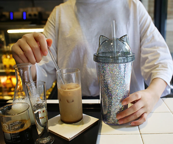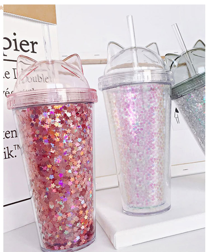 แก้วพลาสติก2ชั้น แก้วเก็บความเย็น กระบอกน้ำ แก้วน้ำ แก้วน้ำแบบใส ทรงคริสตัล