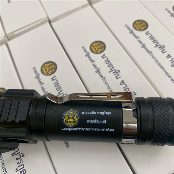 เราให้บริการจัดทำไฟฉายพรีเมียมหลากหลายดีไซน์ โดยเฉพาะรุ่นที่ผลิตจากวัสดุโลหะที่มีความทนทานสูง ดีไซน์กะทัดรัดใช้งานคล่องตัว พร้อมบริการสกรีนข้อความ ชื่อบุคคล โลโก้หน่วยงาน หรือตราสัญลักษณ์ลงบนตัวกระบอกไฟฉาย งานสกรีนของเรามีความคมชัดสูง สวยงาม และติดทนนาน ช่วยให้ข้อความสำคัญของคุณโดดเด่นและคงอยู่คู่กับการใช้งาน