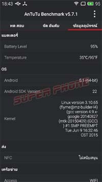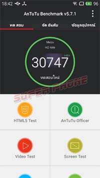 จากการเทศผ่านโปรแกรม Antutu ของ Meizu M2 Note นั้นได้คะแนนอยู่ที่ 30747 คะแนน ซึ่งเป็นคะแนนที่น่าพอใจมากกับมือถือ ราคาไม่ถึงหนึ่งหมื่นบาท