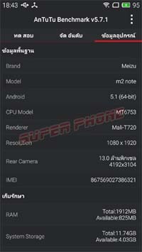 ทดสอบสเปคเครื่อง Meizi m2 note