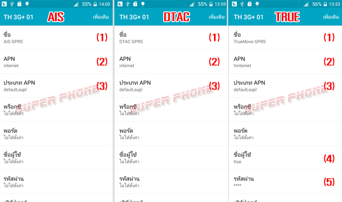 7.1 สำหรับระบบ TRUE ให้ใส่ข้อมูลดังนี้
