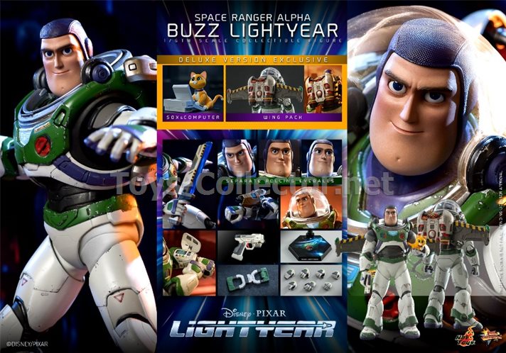 The deluxe version exclusively includes Buzz’s new companion Sox the robotic cat, Sox’s computer, also the iconic wing pack and two styles of wings painted with metallic accent.