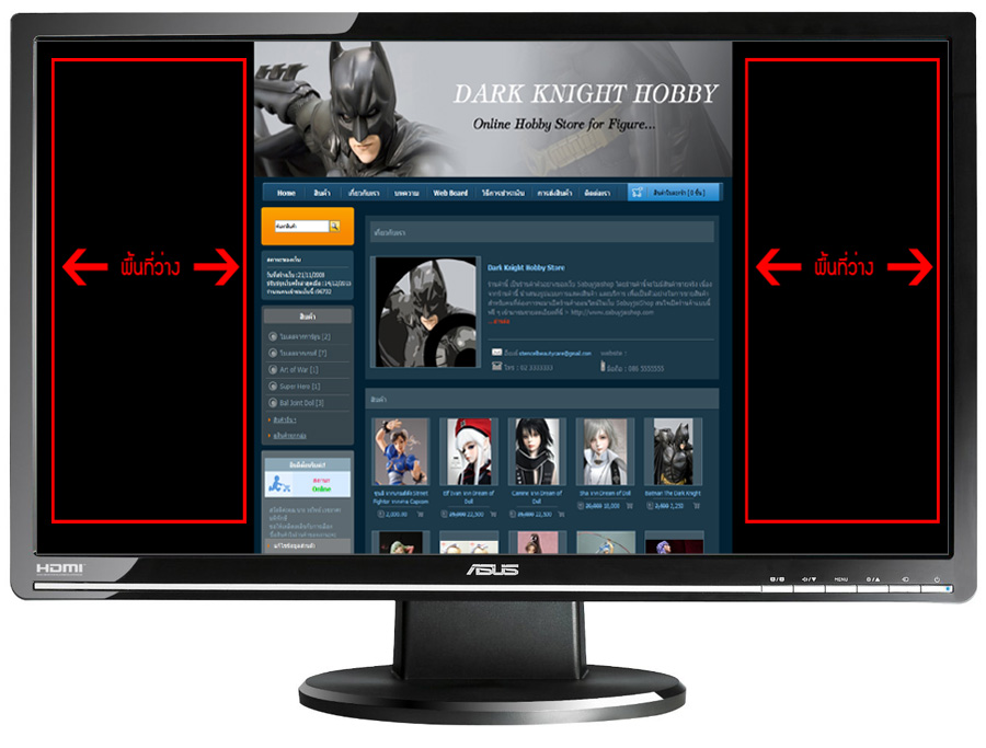 (หน้าจอเว็บแบบสมัยก่อนที่ออกแบบสำหรับจอคอมพ์สี่เหลี่ยม ทำให้ ณ. ปัจจุบัน เมื่อเปิดดูด้วยคอมพ์พิวเตอร์จอ wide-screen เหลือพื้นที่ว่างมากมาย)